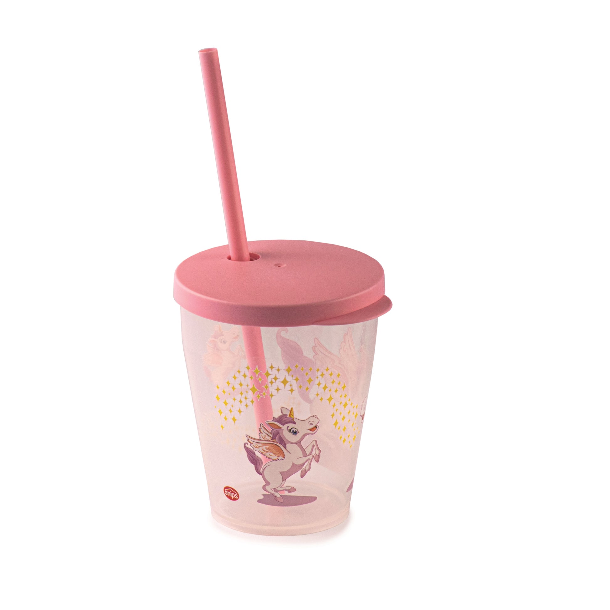 0,385 l Einhorn-Kunststoffglas mit Strohhalm