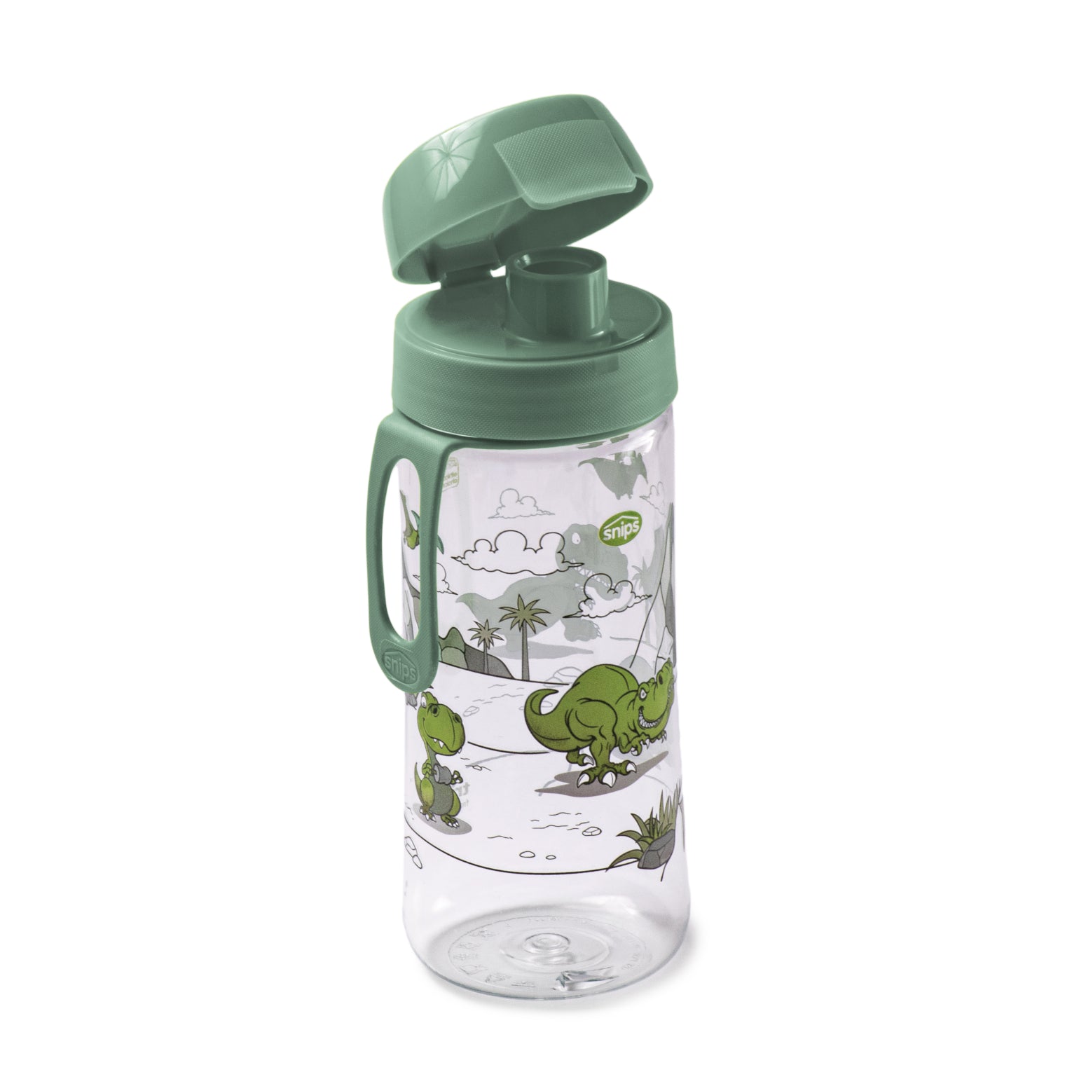 500ml „Dinosaurier“-Wasserflasche aus recyceltem Kunststoff. Spülmaschinenfest. Max. 90 °C, min. -18 °C. Mikrowelle ok. Hergestellt in Italien.