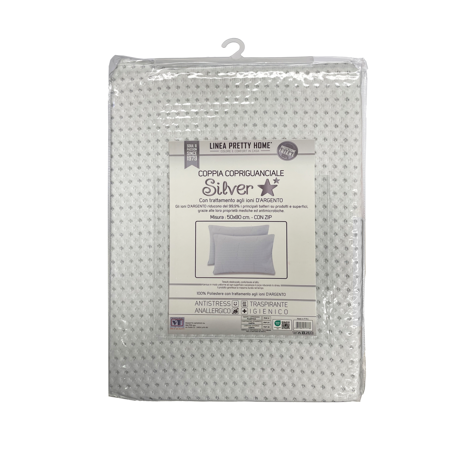 Lot de 2 taies d'oreiller avec traitement aux ions d'argent qui réduit les principales bactéries de 99,9%. Respirant, hypoallergénique et hygiénique. Taille 50*80cm, avec zip. Lavable en machine à 40°C.