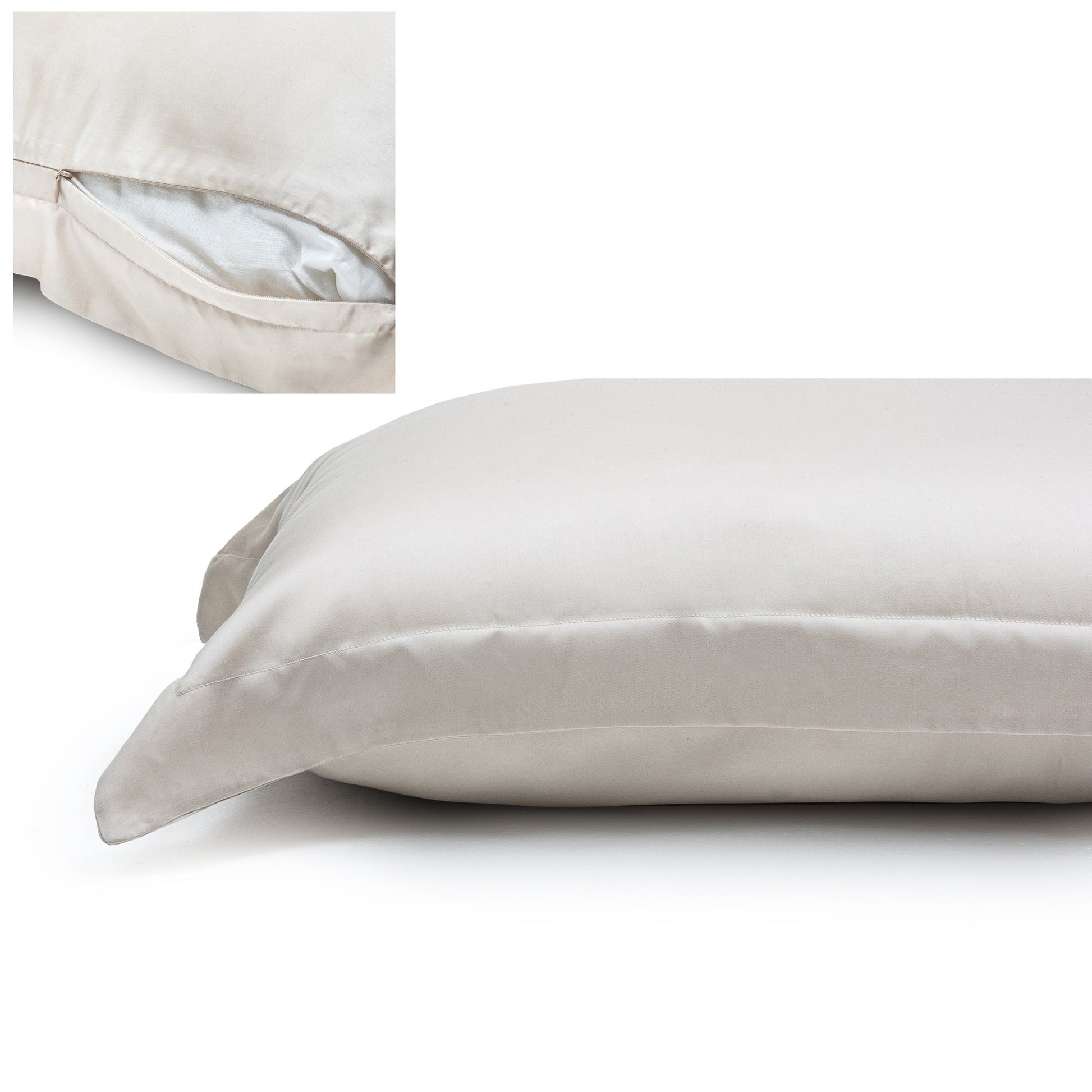 Federa per guanciale 50*80 in seta con cerniera e con volant su tre lati. Fronte in 100% Seta, retro in 100 % Tencel. Lavabile in lavatrice a 30°C.
