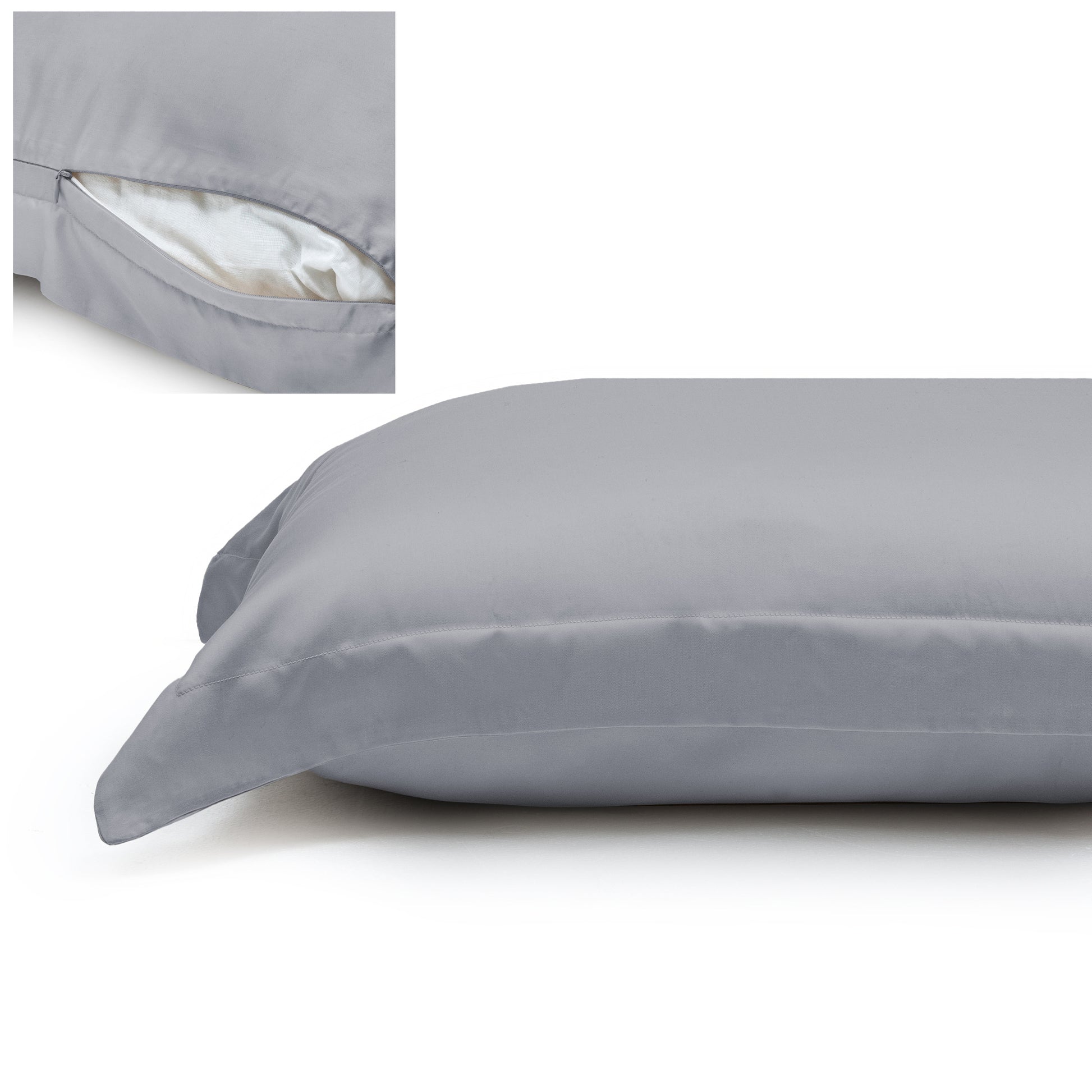 Federa per guanciale 50*80 in seta con cerniera e con volant su tre lati. Fronte in 100% Seta, retro in 100 % Tencel. Lavabile in lavatrice a 30°C.