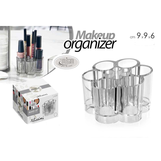 Contenitore porta rossetti e matite in plastica trasparente. Misura 9*9*6.
